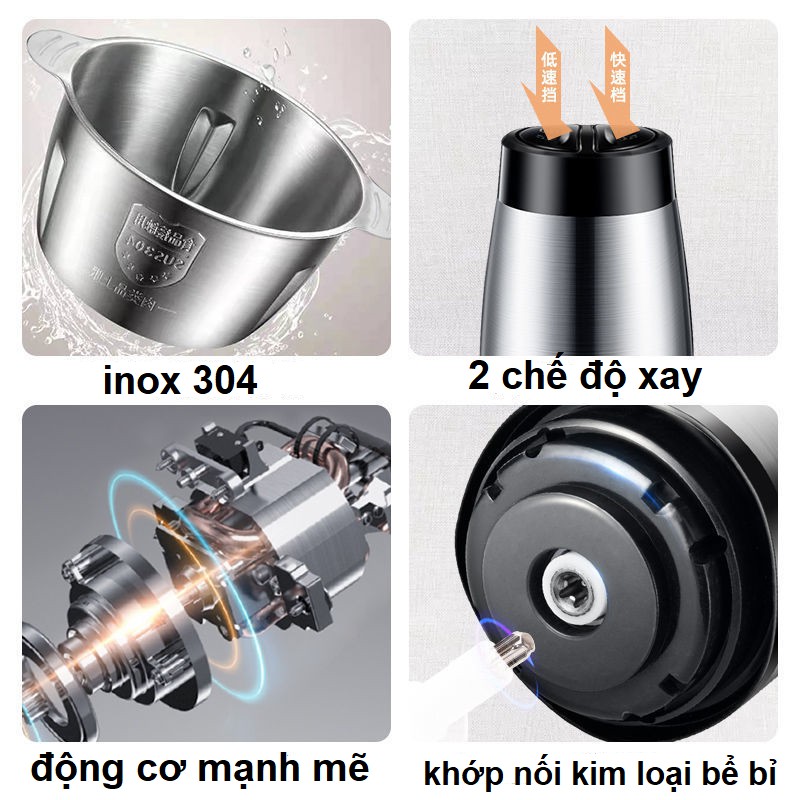 Giới thiệu Máy Xay Thịt Đa Năng ❤️FREESHIP❤️ Cối INOX 304 2L Công Suất 250W, 4 Lưỡi, Cối xay thực phẩm Đa Năng