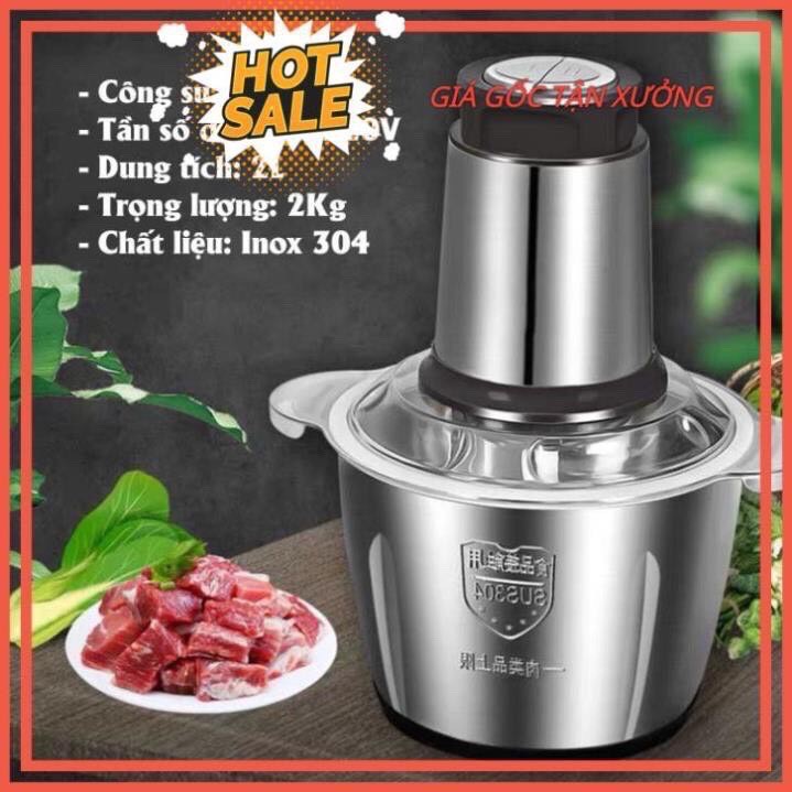 Thiết Bị Điện Gia Dụng > Đồ gia dụng nhà bếp > Máy chế biến thực phẩm & Xay thịt || Máy xay thịt đa năng inox 304 cối 2l 4 lưỡi công suất 300W xay thịt, ớt, rau củ quảCòn hàng