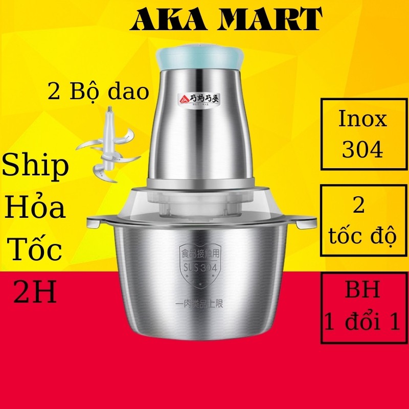 Máy xay thịt loại tốt 2 lít inox 304 | Máy xay thịt đa năng, thực phẩm, trái cây, hoa quả cao cấp- Akamart