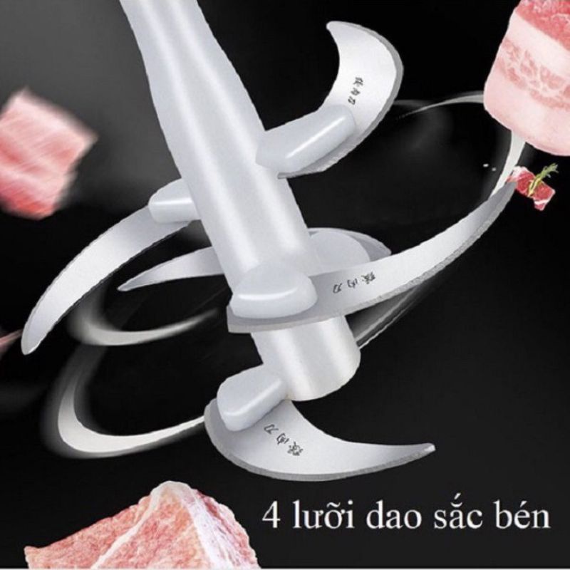 - Máy xay thịt được thiết kế với bộ lưỡi dao kép (4 lưỡi) thông minh và độc đáo kết hợp chất liệu thép không gỉ tạo nên lực cắt mạnh và độ sắc bén nhanh chóng xay thực phẩm nhuyễn chỉ trong 10-30s.