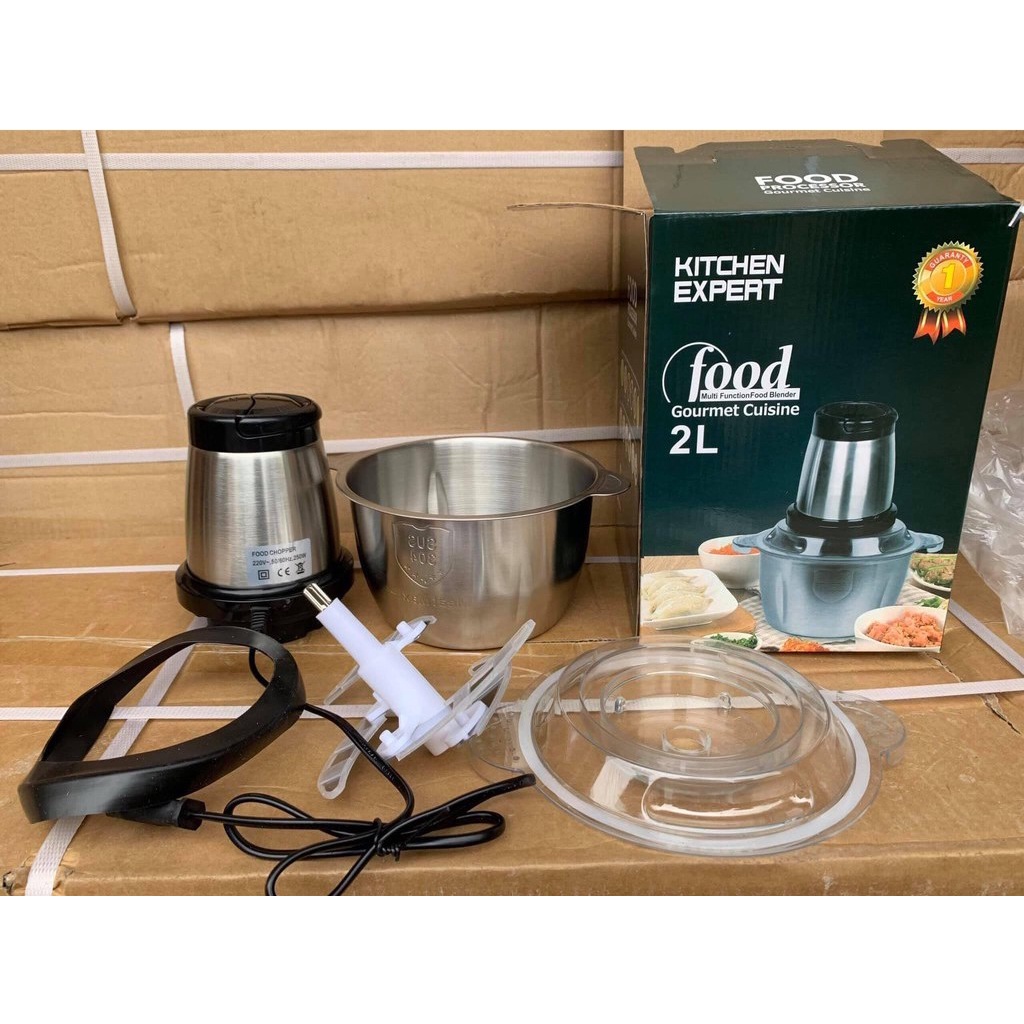 Máy xay thịt đa năng kitchen expert công suất 250W 4 lưỡi dao sắc bén cối inox304 Xay thịt cá cua rau củ quả