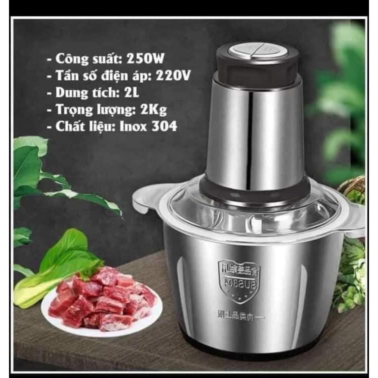 Máy xay thịt đa năng KITCHEN chính hãng , inox 304 không gỉ , cối xay tỏi ớt 2 lit