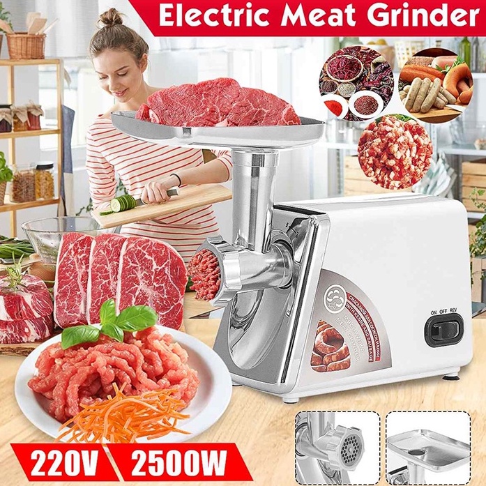 - Máy xay thịt sử dụng điện dân dụng 220V – 50Hz nên rất tiện lợi khi bạn đem đến bất kì đâu để sử dụng