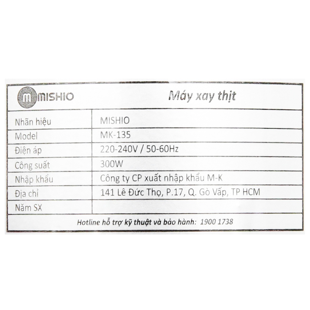 Máy xay thịt đa năng Mishio MK-135 1.8 lít 300W xay thịt, cá, rau củ, gia vị - Chính hãng BH 12 tháng