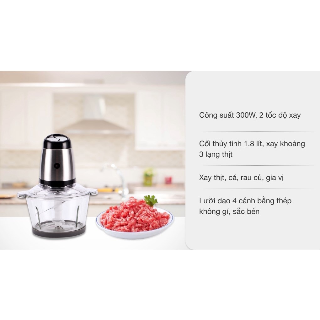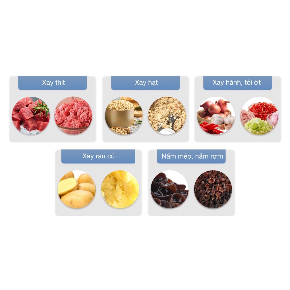 - Cối xay thịt thủy tinh 2l có thể xay nhiều loại thực phẩm như thịt, cua, cá, rau củ quả …...