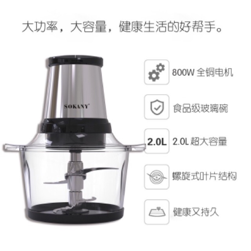 Thiết Bị Điện Gia Dụng > Đồ gia dụng nhà bếp > Máy chế biến thực phẩm & Xay thịt || Máy xay thịt đa năng SOKANY 2L CỐI THỦY TINH VỚI THIẾT KẾ SANG TRỌNGCòn hàng