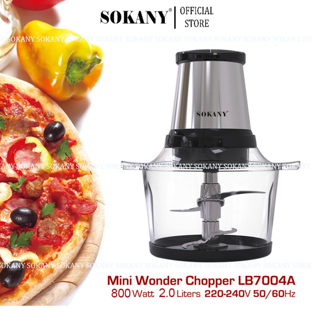 MÁY XAY THỊT ĐA NĂNG SOKANY cao cấp chính hãng bảo hành 12 thángMáy xay thịt, máy xay đa năng sokany 2.0L với thiết kế hiện đại, sang trọng với toàn bộ thân máy được bọc nhôm xước cao cấp. Máy có công suất lên đến 800W kết hợp lưỡi dao kép ionx 304 giúp xay nhuyễn mọi thứ một cách nhanh chóng. cối máy được làm bằng thủy tinh cường lực giúp tằng độ thẩm mỹ và độ bền đáng kinh ngạc. máy xay đa năng sokany hoạt động bền bỉ với động cơ 100% lõi đồng nguyên chất, thiết kế relay nhiệt tự động ngắt máy khi quá tải. Thể tích cối xay lên đến 2.0L phù hợp với nhu cầu sử dụng của gia đình.