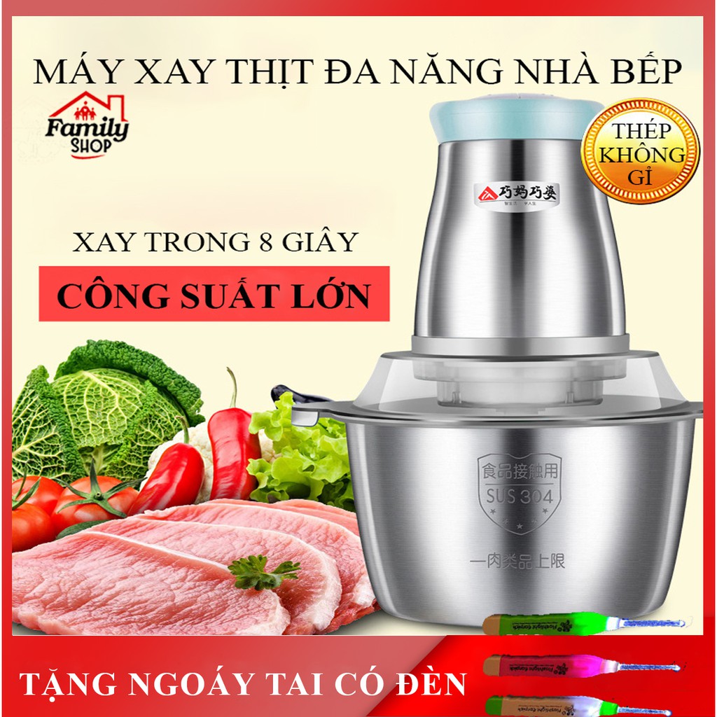 Máy xay thịt đa năng thiết kế 4 lưỡi dao kép thép không gỉ. Bảo hành 2 năm