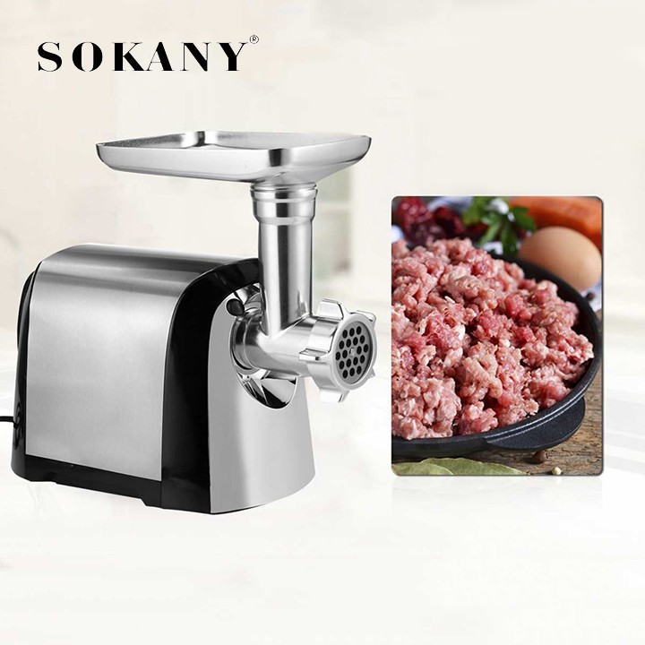 Máy xay Sokany có thiết kế gọn, nhẹ và tính năng xay thịt, cá... với số lượng nhiều. Máy có nút bấm khởi động chọn chế tốc độ xay rất nhanh gọn và dễ sử dụng cùng chức năng quay ngược (Reverse) khi thực phẩm bị kẹt. Để bảo vệ độ bền của máy, máy có khả năng tự động ngắt điện khi quá tải.
