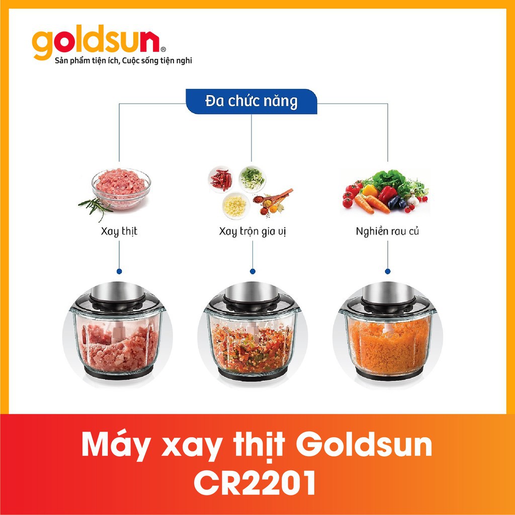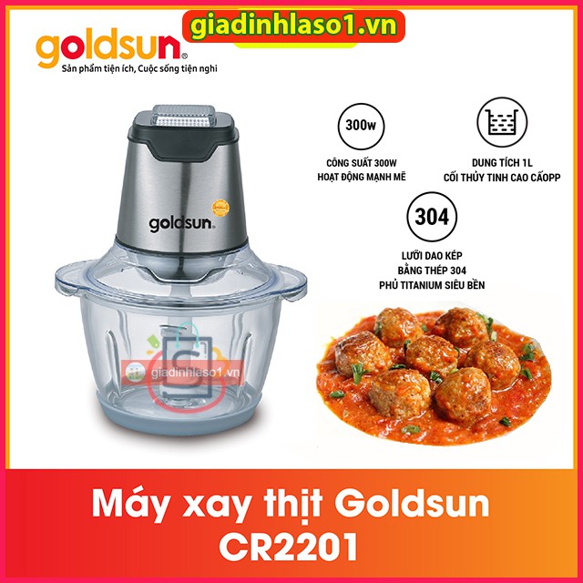 Giới thiệu [Mã ELHA22 giảm 5% đơn 300K] Máy Xay Thịt Goldsun CR2201 (1.2 lít) Lưỡi Dao Kép - Bảo Hành 12 Tháng