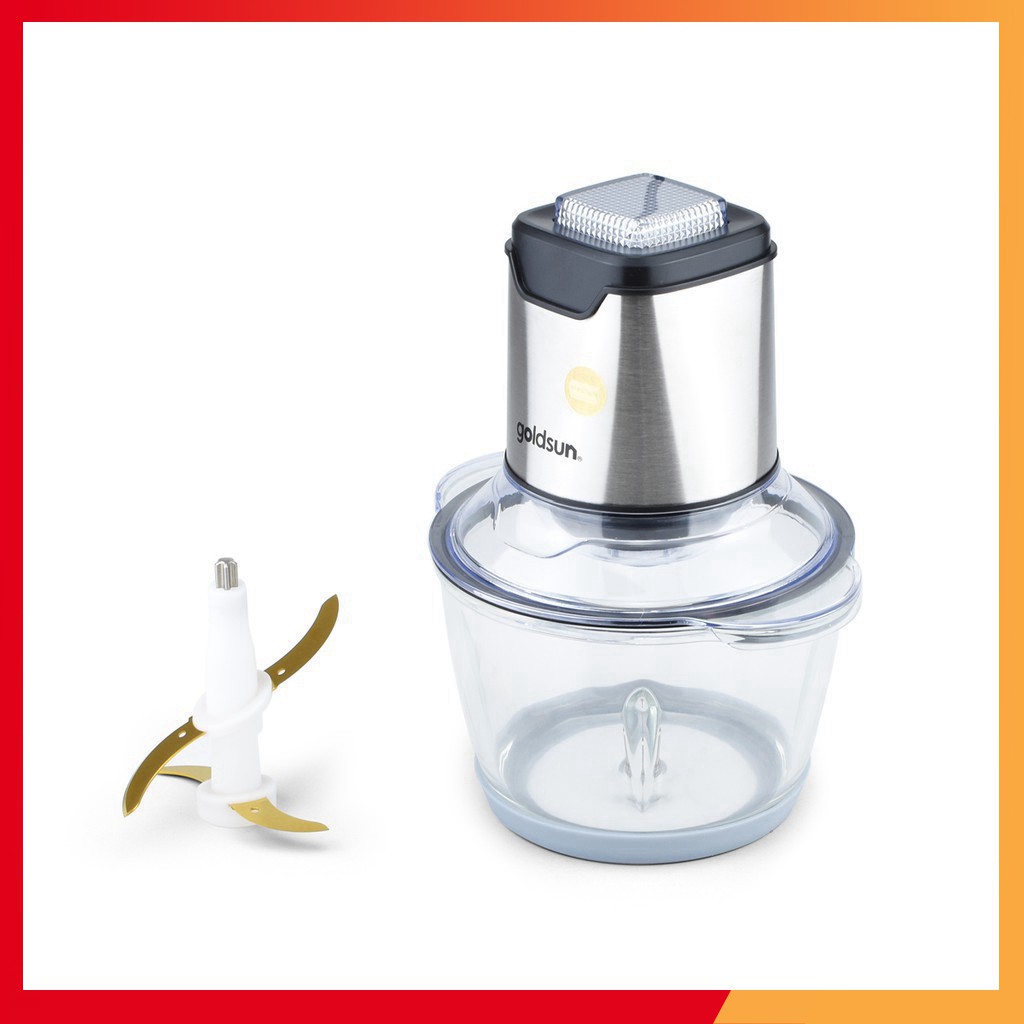 Máy xay thịt GOLDSUN CR2201 - 1.2L Cối thủy tinh - Lưỡi dao kép làm từ chất liệu thép không gỉ phủ Titaniumlà dụng cụ đồ bếp tuyệt vời giúp công việc nội trợ trở nên nhanh chóng hơn bao giờ hết.
