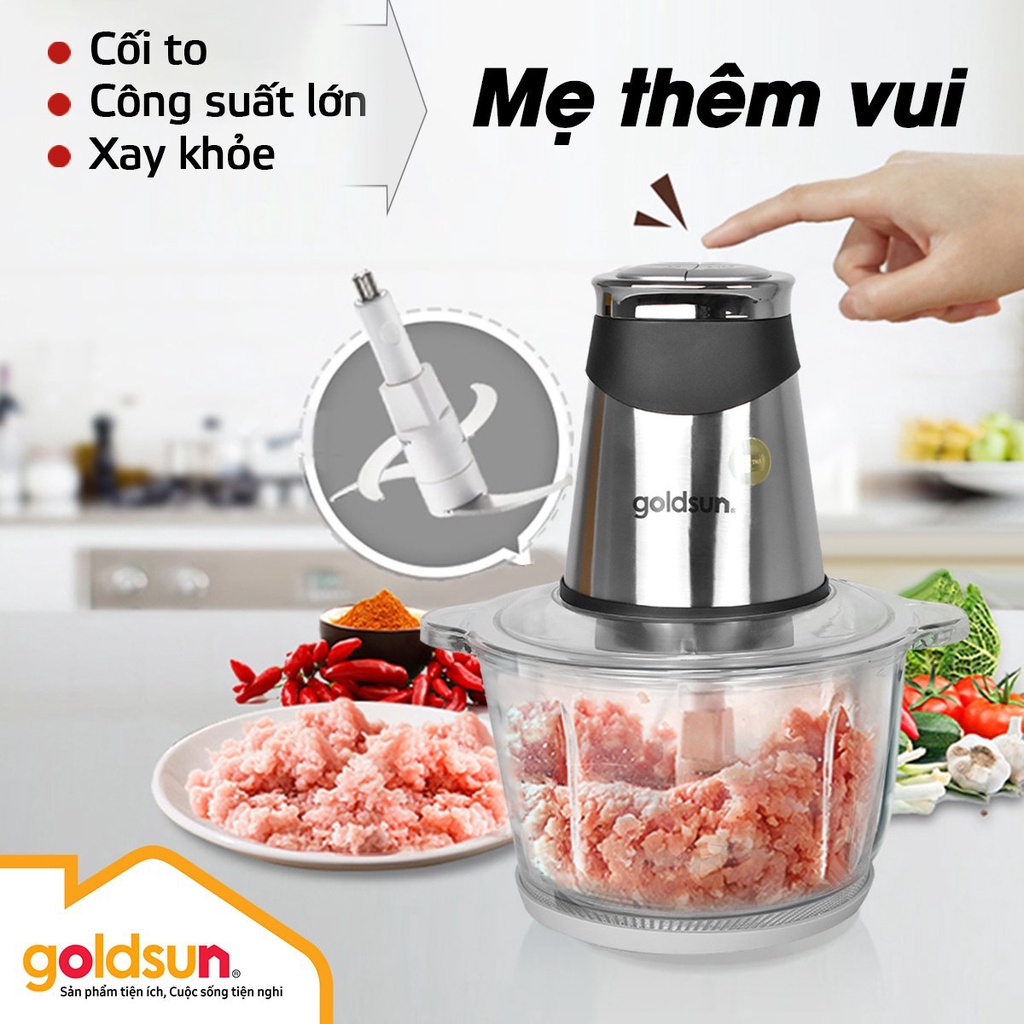 Giới thiệu Máy xay thịt GOLDSUN 2L cối xay thủy tính chịu lực 2 mức độ xay phù hợp để xay thịt cá xay tỏi ớt xay thức ăn dặm cho bé