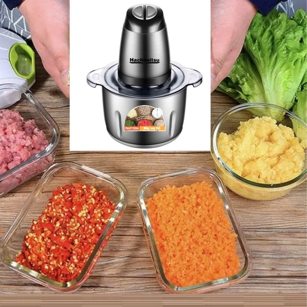 - Cối xay của máy xay thịt Hachimitsu HC-510 có dung tích 2L, phù hợp với nhu cầu của nhiều gia đình.