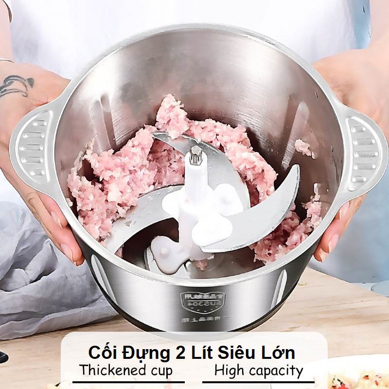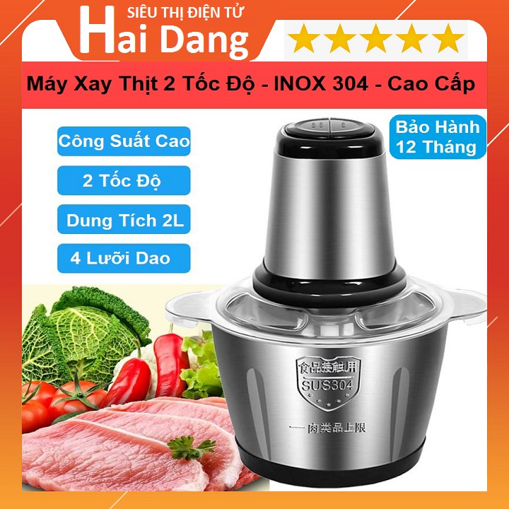 Máy Xay Thịt Inox, 4 Lưỡi Đa Năng, 2 Tốc Độ, Công Suất 250W- Xay Thịt, Xay Tỏi Ớt, Xay Rau Củ Quả - BH 12 Tháng