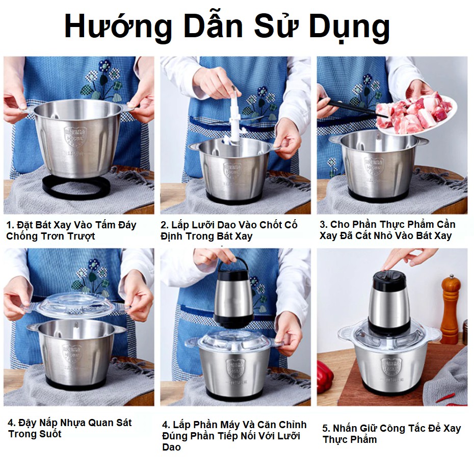 Giới thiệu Máy Xay Thịt Inox, 4 Lưỡi Đa Năng, 2 Tốc Độ, Công Suất 250W- Xay Thịt, Xay Tỏi Ớt, Xay Rau Củ Quả - BH 12 Tháng