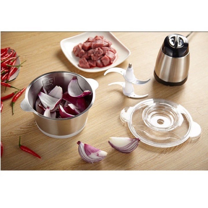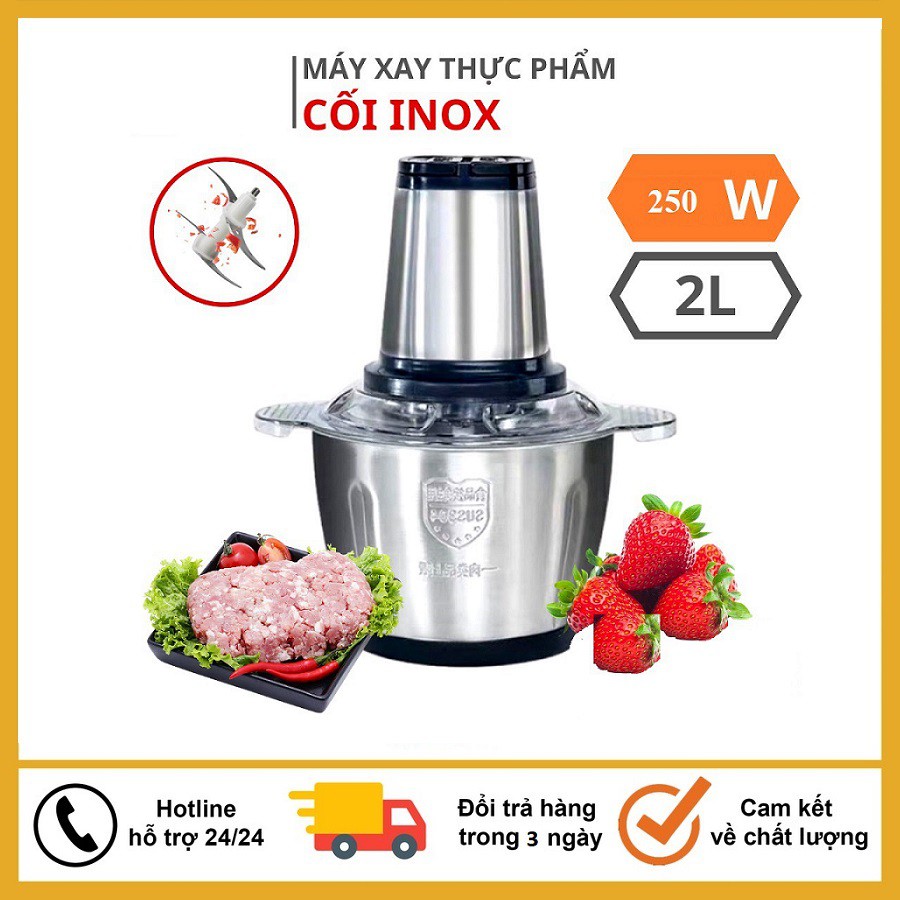 Máy Xay Thịt Inox, Cối Xay Thịt, Xay Thực Phẩm 2L Công Suất 250W Siêu Bén, Siêu Tiện Dụng