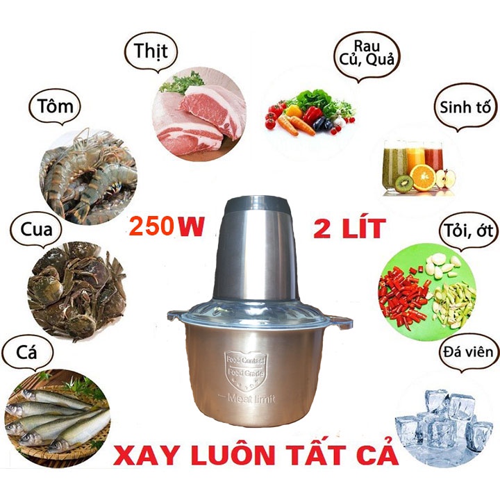 Máy xay thịt cá cối inox 4 lưỡi có công suất 250w đủ mạnh mẽ để xay được nhiều loại thức ăn và thực phẩm trong nhà bếp như :