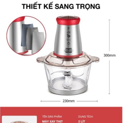 Thông số kỹ Máy xay thịt Ladomax cối thủy tinh dung tích 2L công suất 400W:- Tên sản phẩm: MÁY XAY THỊT ĐA NĂNG
