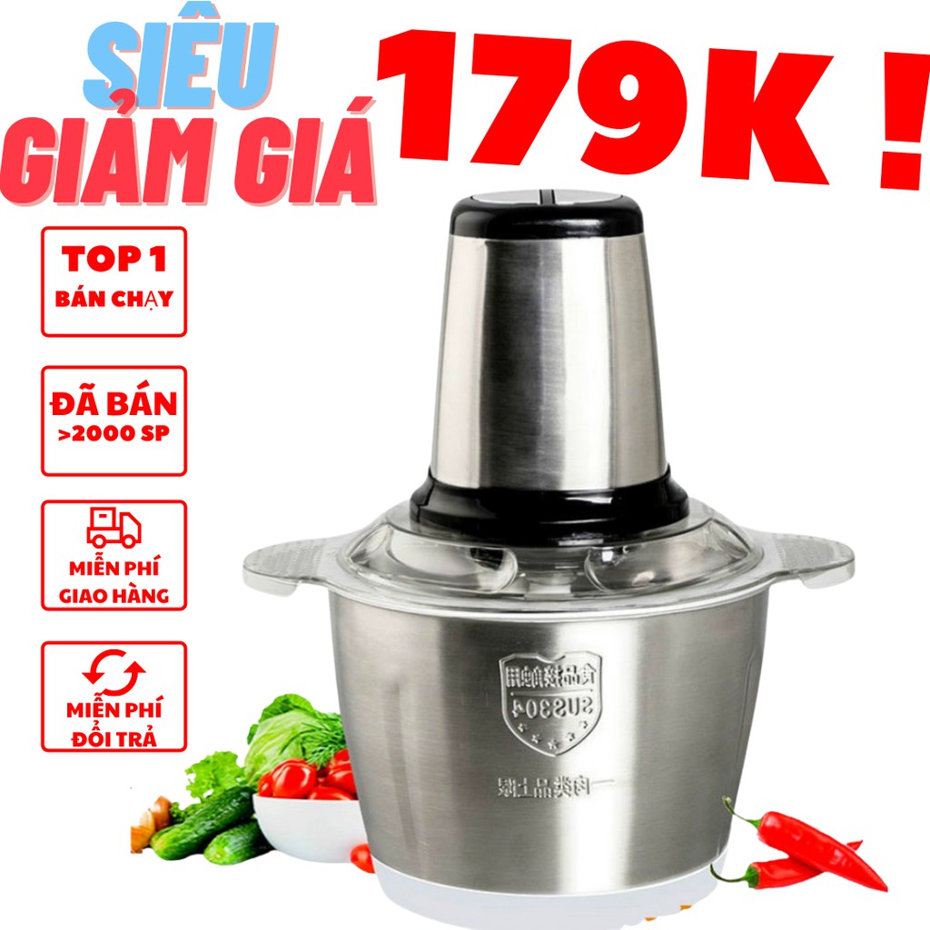 Máy Xay Thịt, Máy Say Thịt Cá Cối Inox 304 2L 4 Lưỡi Công Suất 250W Cao Cấp - Cối Xay thực phẩm rau củ quả đa năng