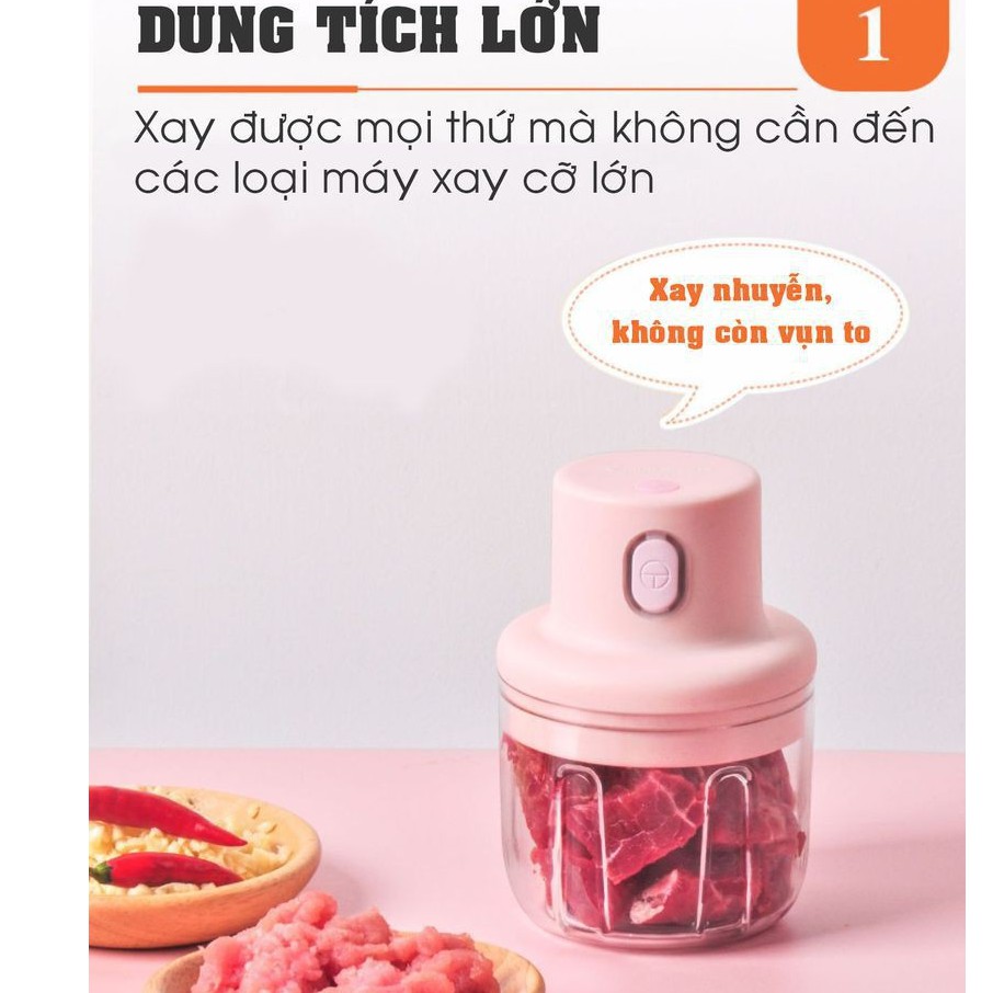 Thiết Bị Điện Gia Dụng > Đồ gia dụng nhà bếp > Máy chế biến thực phẩm & Xay thịt || Máy xay thịt, máy tỏi ớt ,hành, ăn dặm cho bé, máy xay cầm tay tự động sạc pin đa năng tiện lợi, dung tích 250mlCòn hàng