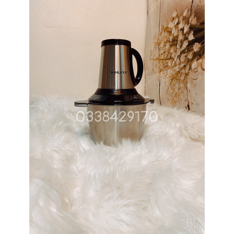 Máy xay thịt, máy xay cầm tay đa năng 3 lít Sokany, công suất lớn 600W cối inox 304 cao cấp 2022
