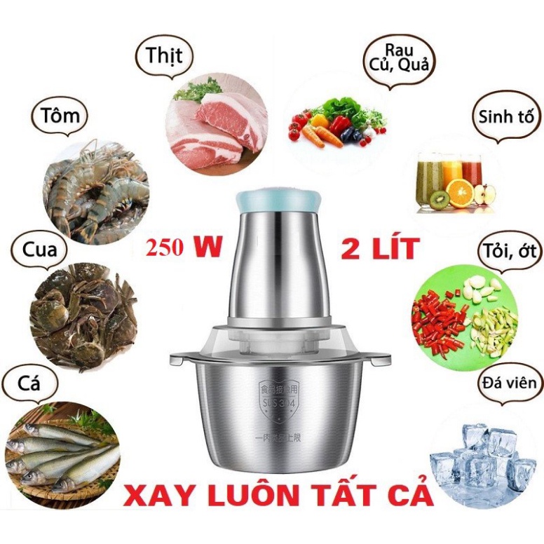 Máy Xay Thịt, Máy Xay Đa Năng Cối 2L inox Cầm Tay 2 Chế Độ 4 Lưỡi Dao Siêu Bền - FreeShip toàn quốc