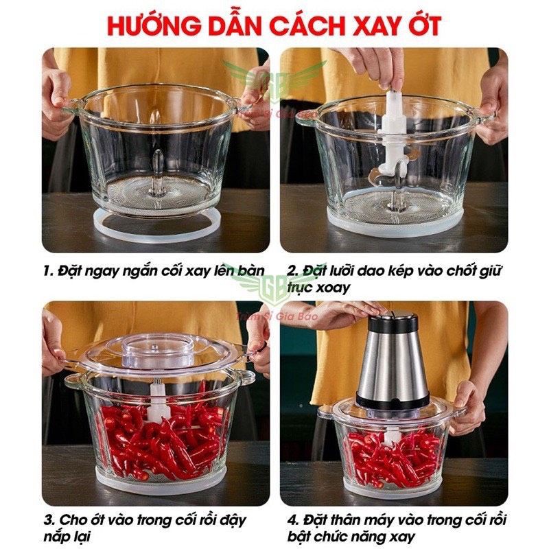 Máy Xay Thịt Cối Inox 4 Lưỡi Đa Năng, máy xay cầm tayCông suất 300w xay thịt, xay tỏi ới, xay rau củ quả, BẢO HÀNH 6 tháng