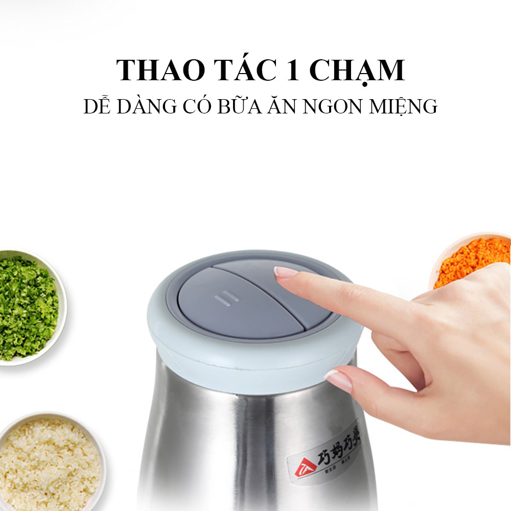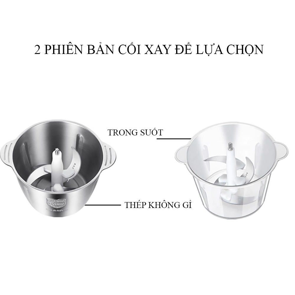 Máy xay thịt, máy xay đa năng thiết kế 4 lưỡi dao kép siêu sắc bén có 2 phân loại cối nhựa và cối inox không gỉ