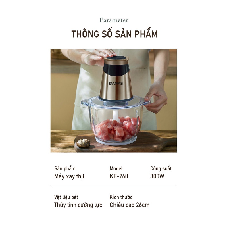 Thiết Bị Điện Gia Dụng > Đồ gia dụng nhà bếp > Máy chế biến thực phẩm & Xay thịt || Máy xay thịt thực phẩm Đa năng Damas KF-260 | UniMart Official StoreCòn hàng
