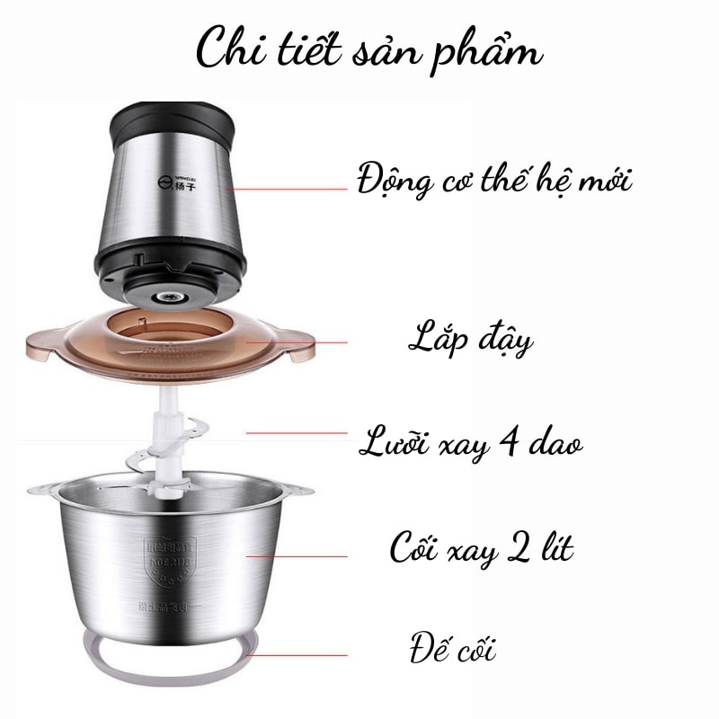 Giới thiệu Máy Xay Thịt Máy Xay Thực Phẩm Đa Năng 4 Lưỡi Dao Cối Inox Không Gỉ 2 Lít