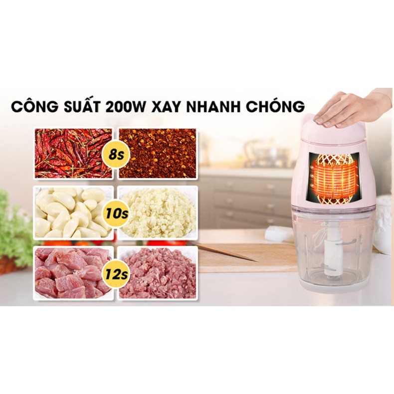 ✅ Công suất 200W, lưỡi dao 3 cánh bằng inox 304 bền bỉ, xay nhuyễn nhanh.