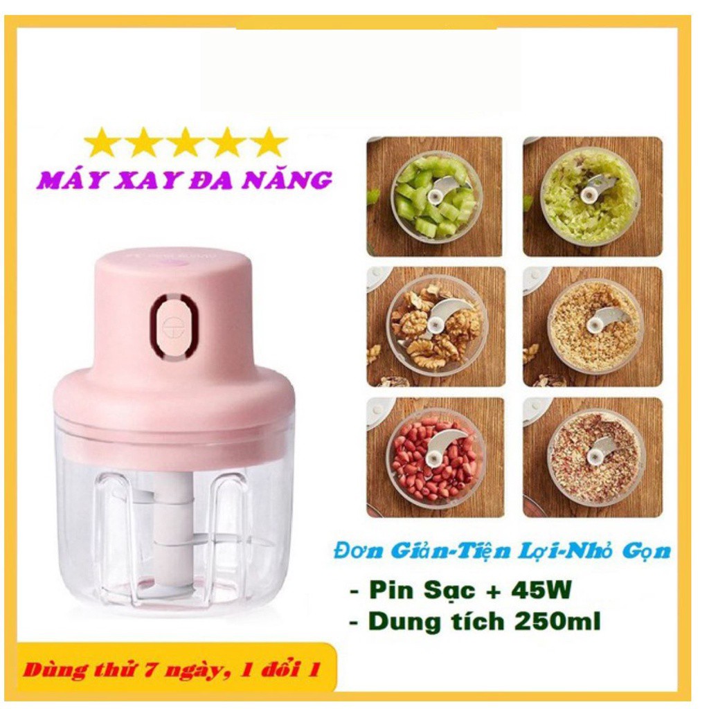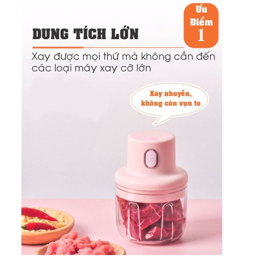 Máy xay thịt mini cầm tay sạc điện 100ml máy xay ớt của quả đa năng có cổng sạc usb XIAOMIMI 11416858161------------------