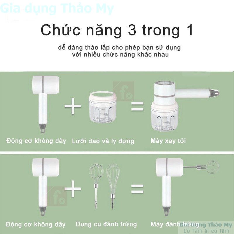 Máy Xay Thịt Mini Kiêm Máy Đánh Trứng Cầm Tay Sạc Tích Điện Xay Tỏi Ớt, Rau Củ Đa Năng
