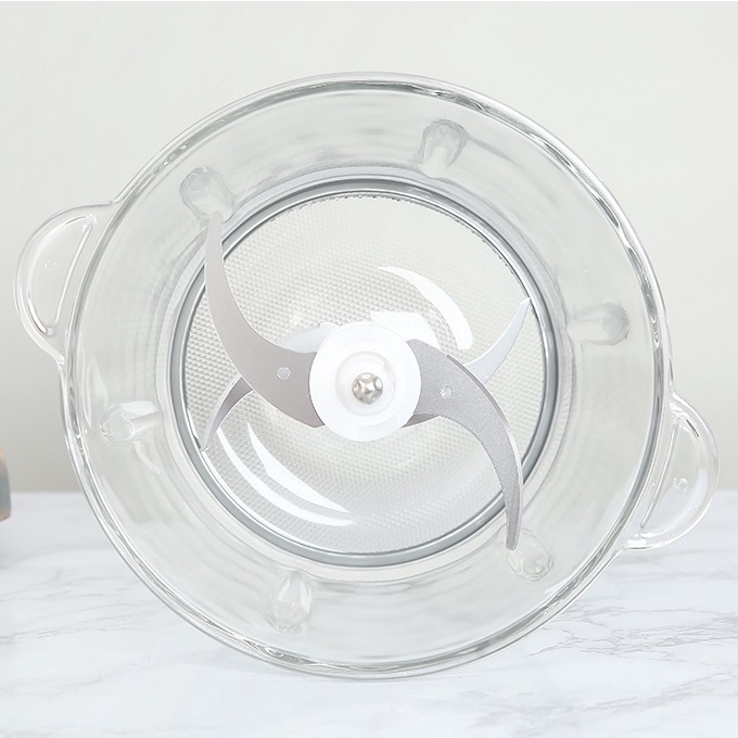 Thiết kế cối trong suốt có thể nhìn thấy thực phẩm xay bên trong mà không cần mở nắp, công tắc nút nhấn phía trên tiện lợi và chịu lực khi hoạt động.