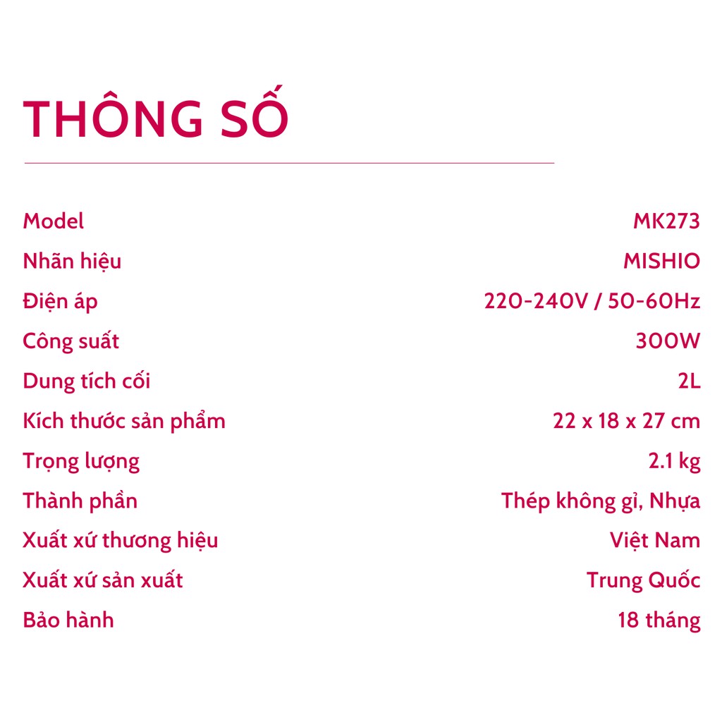 Giới thiệu [Mã ELHADEV giảm 4% đơn 300K] Máy Xay Thịt Mishio MK273 2 Lít 300W - Quà tặng từ 1/9 - 31/10