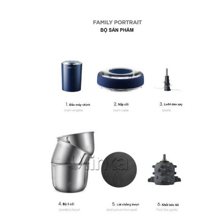 ✔️Bộ sản phẩm bao gồm: 03 cối inox (1.5l; 1.2l; 0.8l) - 01 cục thân máy - 01 nắp cối - 01 dao xay - 01 dụng cụ bóc tỏi - 01 lót cối chống trượt