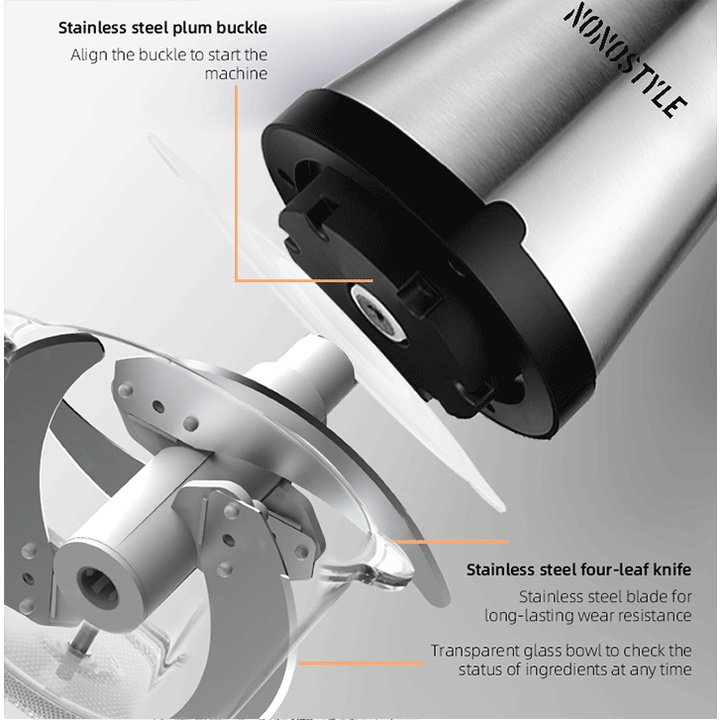 Máy xay thịt đa năng Nonostyle 3 lưỡi dao kép dung tích 2L công suất 300W BH 12 tháng