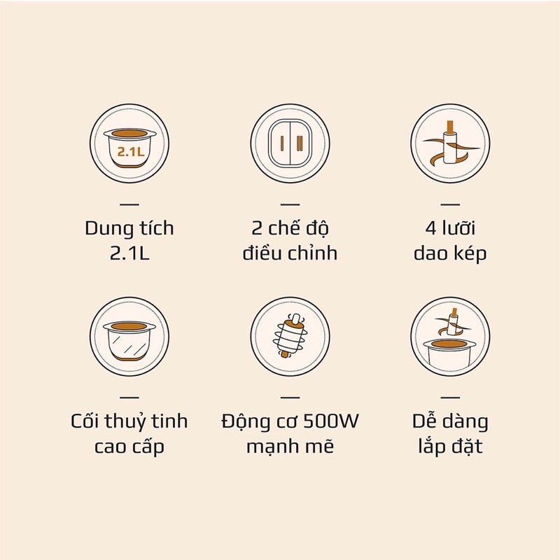 ❄ Dung tích cối xay lớn lên tới 2.1L