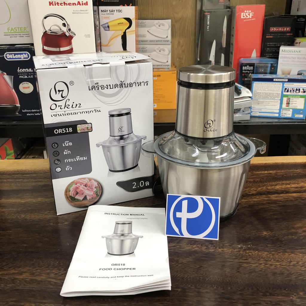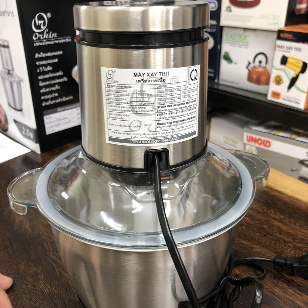 Thiết Bị Điện Gia Dụng > Đồ gia dụng nhà bếp > Máy chế biến thực phẩm & Xay thịt || Máy xay thịt Orkin OR518, 2 dao bằng thép không gỉ, xay hầu hết đồ ăn - Bảo hành 1 năm chính hãngCòn hàng