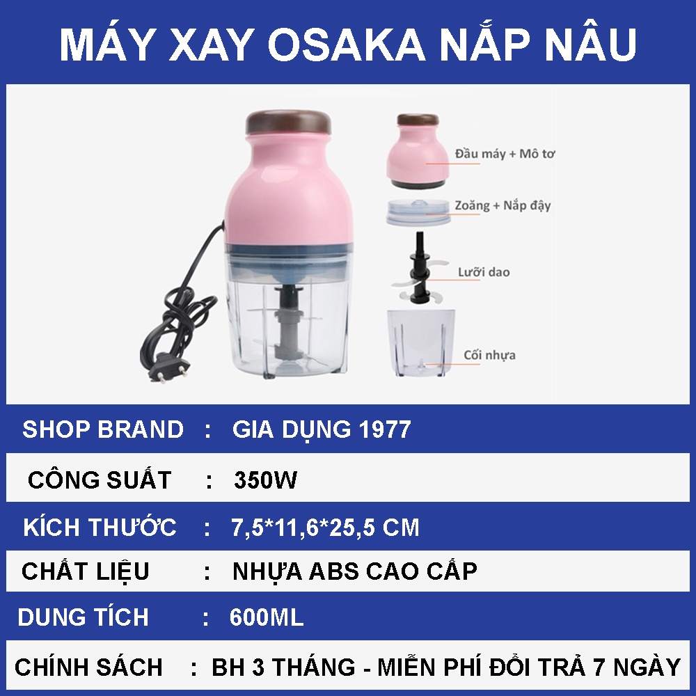 Gia Dụng 1977 cam kết với khách hàng về sản phẩm Máy xay thịt Osaka Nhật Bản công suất 350W, Máy xay đa năng xay thịt, xay đá siêu tốc và nhỏ gọn tiện lợi: