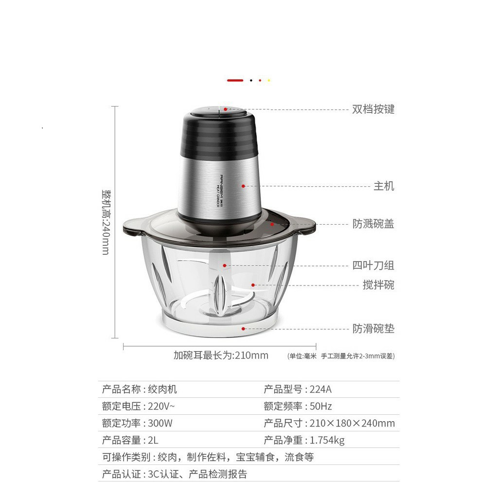 Máy xay thịt Ranbem cối thủy tinh dung tích 2L siêu to, cực kỳ tiện lợi, freeship toàn quốc