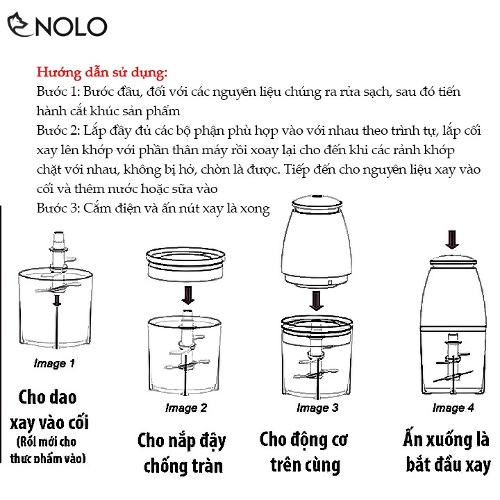 Bước 2: Lắp đầy đủ các bộ phận phù hợp vào với nhau theo trình tự, lắp cối xay lên khớp với phần thân máy rồi xoay lại cho đến khi các rảnh khớp chặt với nhau, không bị hở, chờn là được. Tiếp đến cho nguyên liệu xay vào cối và thêm nước hoặc sữa vào