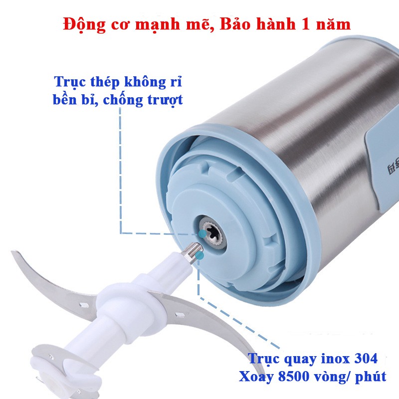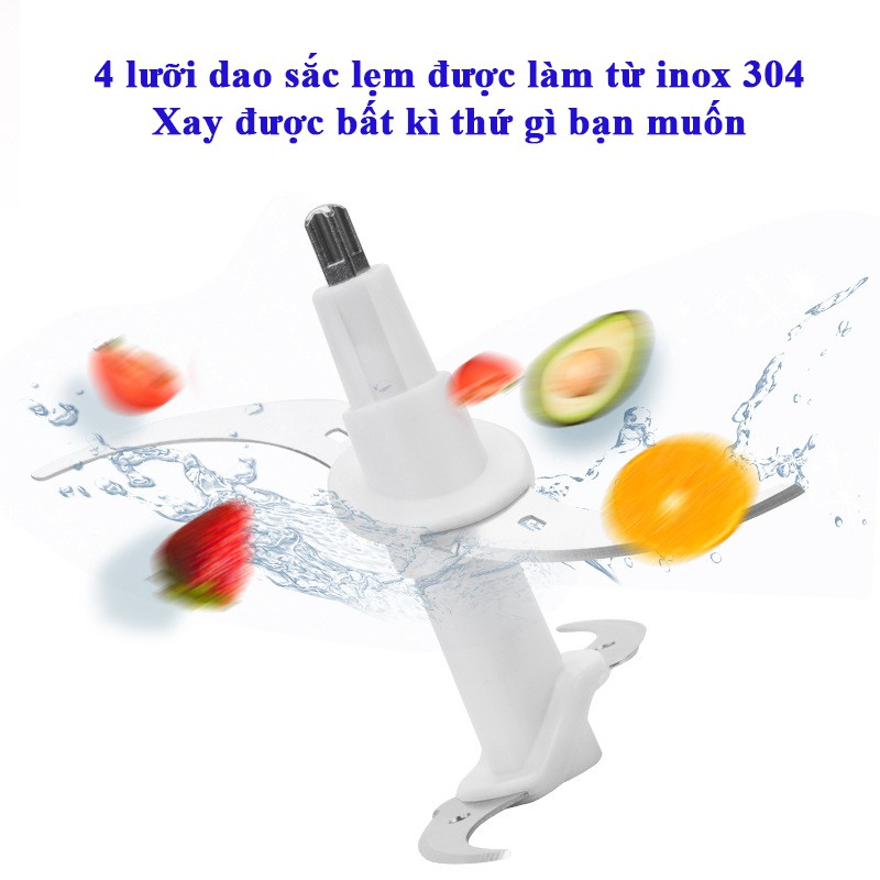 - Lưỡi dao kép 4 cánh sắc bén, được làm bằng thép không rỉ có khả năng chống ăn mòn tốt, đảm bảo vệ sinh và an toàn cho sức khỏe, mang đến khả năng xay nhuyễn nhanh chóng và đều nhiều loại thực phẩm khác nhau.
