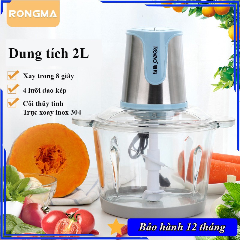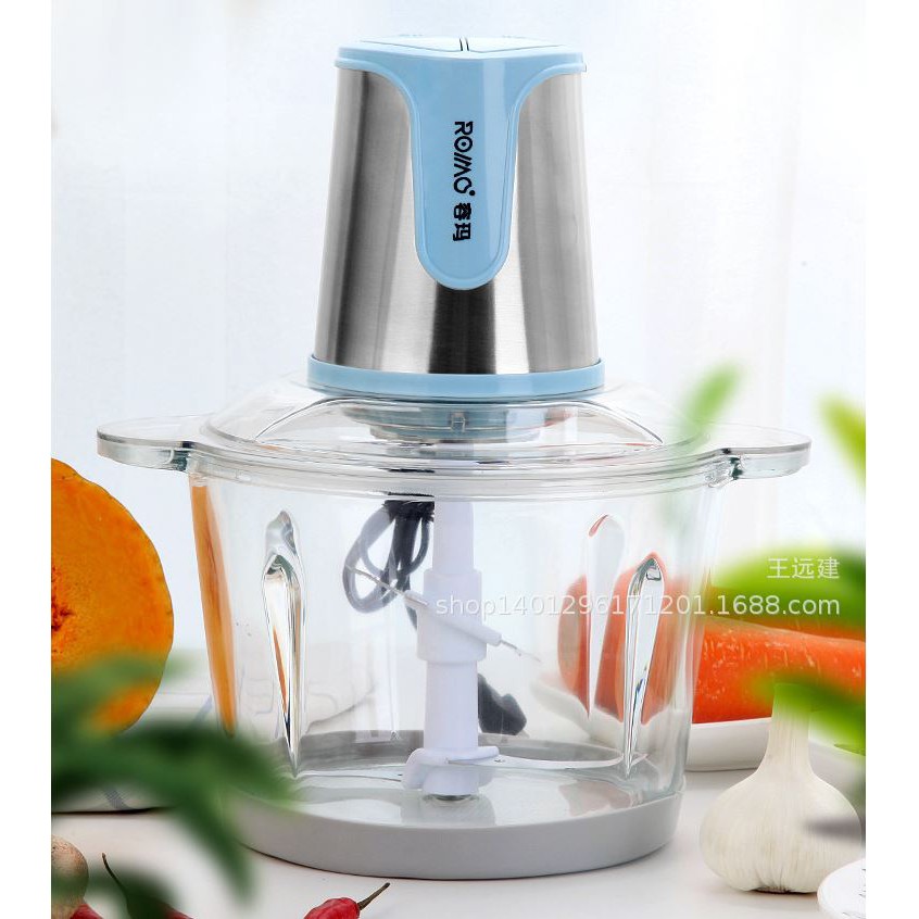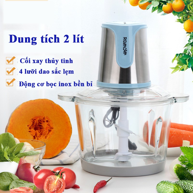 Máy Xay Thịt RoMo Chính Hãng, Công suất Lớn, Cối Xay Thủy Tinh, 4 Lưỡi Đa Năng, Dung Tích 2L - BẢO HÀNH 2 NĂM