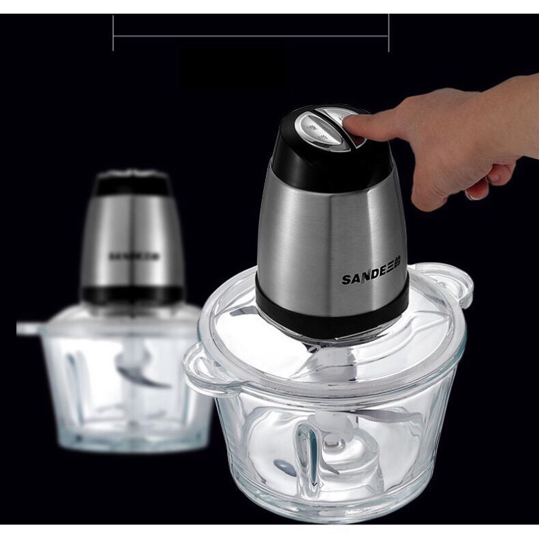 Máy xay thịt Sande cối thủy tinh 2 tầng lưỡi xay khỏe, nhuyễn đa năng- Đối với những gia đình có con nhỏ hay người lớn tuổi thì việc xay nhỏ hay xay nhuyễn thực phẩm là điều cần thiết để không ảnh hưởng đến sức khỏe của bé. Nhưng những thao tác truyền thống như băm chặt trên thớt vừa lâu lại không an toàn vệ sinh. Hiểu được tâm lý của các bậc cha mẹ, shop đã đưa ra một dụng cụ nhà bếp vô cùng lý tưởng cho việc xay thịt cá.