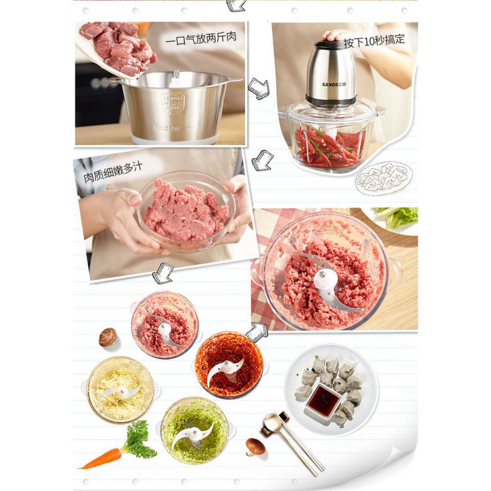 Thiết Bị Điện Gia Dụng > Đồ gia dụng nhà bếp > Máy chế biến thực phẩm & Xay thịt || Máy xay thịt Sande cối thủy tinh 2 tầng lưỡi xay khỏe, nhuyễn đa năngCòn hàng