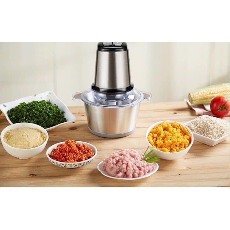 - Chất liệu: cối inox 304 (hoặc thủy tinh chịu lực chống trầy xước), dung tích 2L, lưỡi dao inox không gỉ, thân bọc inox