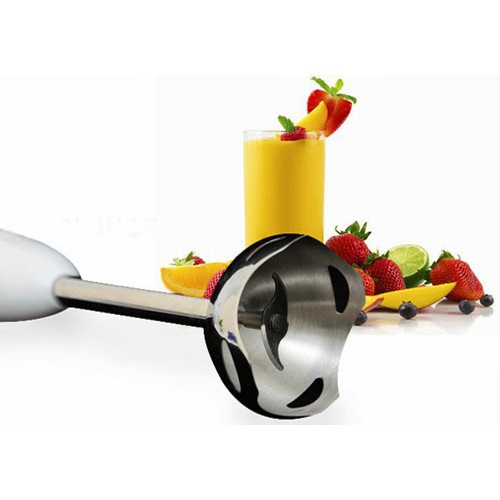 Máy có đầu dao bằng inox rất bền, có thể xay sinh tố, soup, cháo và các thức ăn khác...