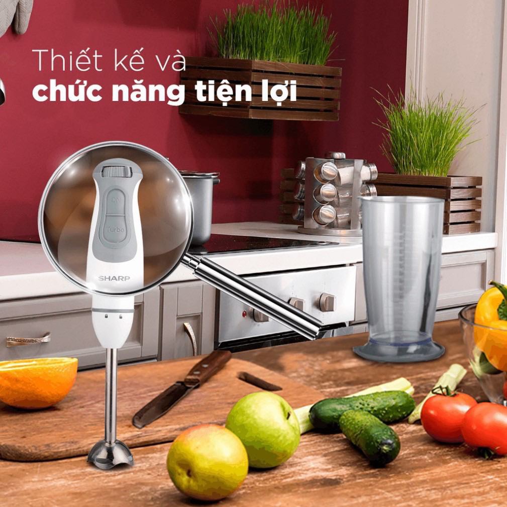 🍀Máy xay cầm tay đa năng SHARP EM-H076SV-WH- Máy sử dụng xay sinh tố, xay thịt, xay thực phẩm nóng, đánh trứng... phục vụ tích cực trong gian bếp gia đình.