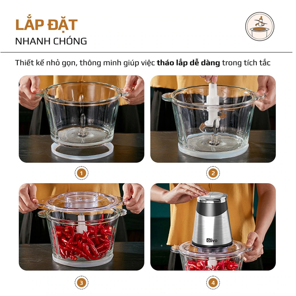 Giới thiệu Máy Xay Thịt Thực Phẩm Đa Năng OLIVO FC21 Cao Cấp - Dung Tích Lớn 2.1L - Công Suất 500W - CHÍNH HÃNG, Bảo Hành 24 tháng